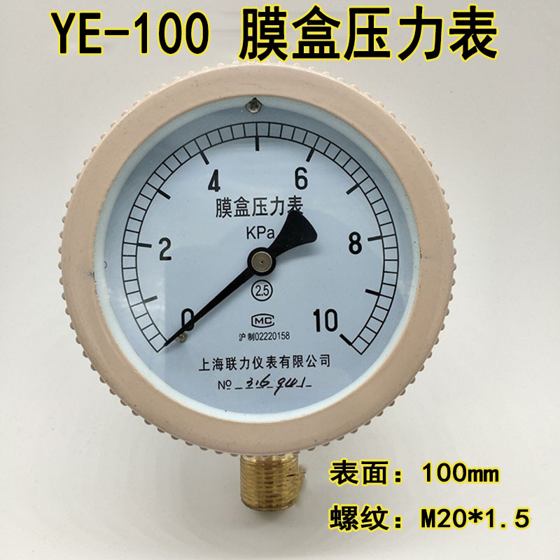 Ye100膜箱圧力計微圧表千パル計0-10 20 40 60kpa天然ガス計m 20*1.5