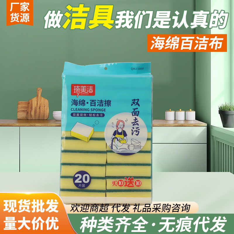 スーパーマーケット家庭用独立包装スポンジキッチン用 2 ドルショップ食器洗いクリーニング高密度 20 個スポンジ卸売