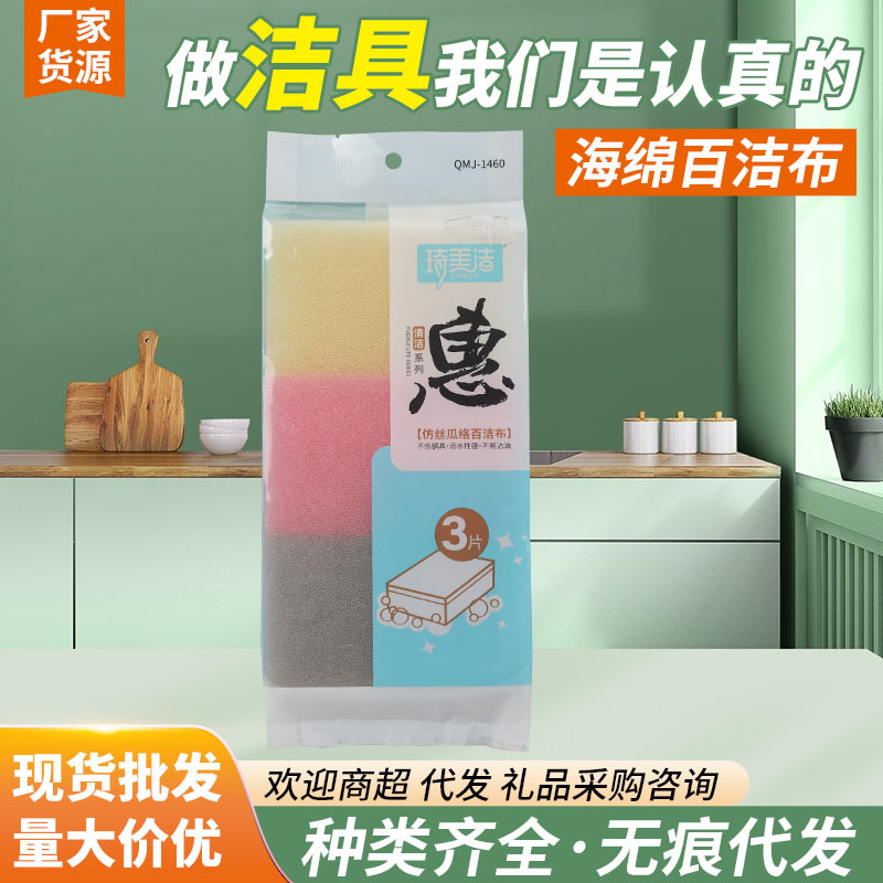 スーパーマーケット家庭用ヘチマ綿 3 個個別包装キッチン 1 ドルショップ食器洗いクリーニング高密度スポンジワイプ卸売