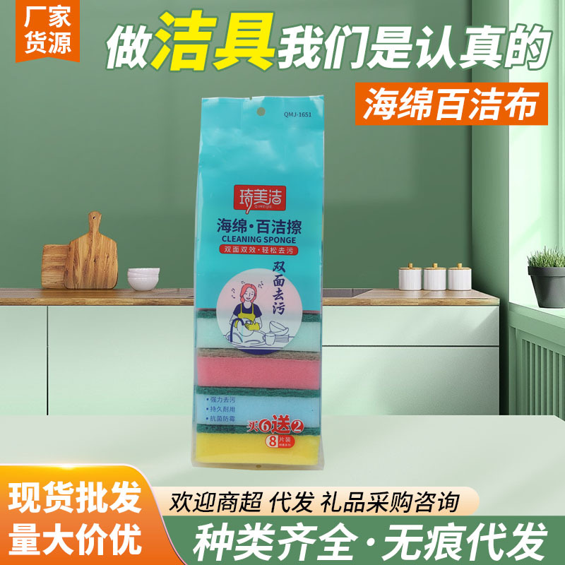 スーパーマーケット家庭用独立包装カラースポンジキッチンショップ食器洗いクリーニング高密度8スポンジ卸売