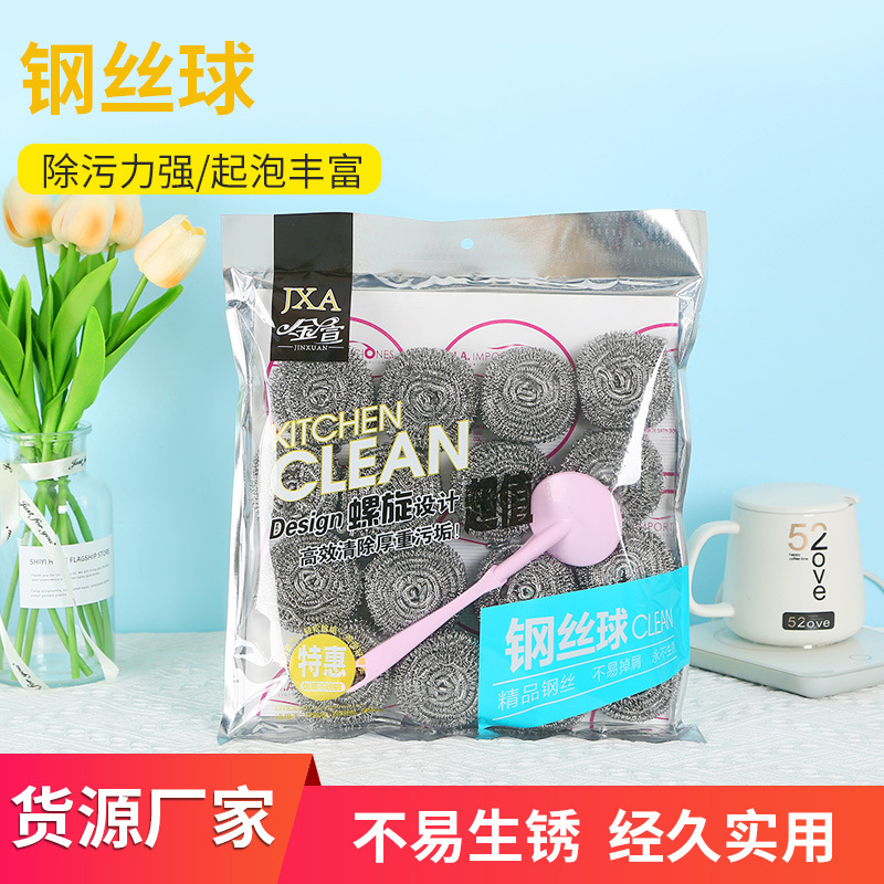 メーカー卸売り清潔ボール家庭用洗浄キッチン袋洗浄セットワイヤーボール + 皿洗い雑巾セット
