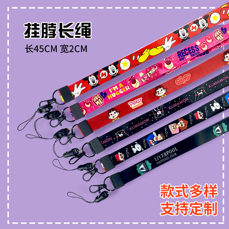 携帯電話のストラップの熱転写印刷のダブルボタンはストラップの仕事の札の吊り紐の湿った金の携帯電話の長い縄の漫画の卸売りを取り外します。