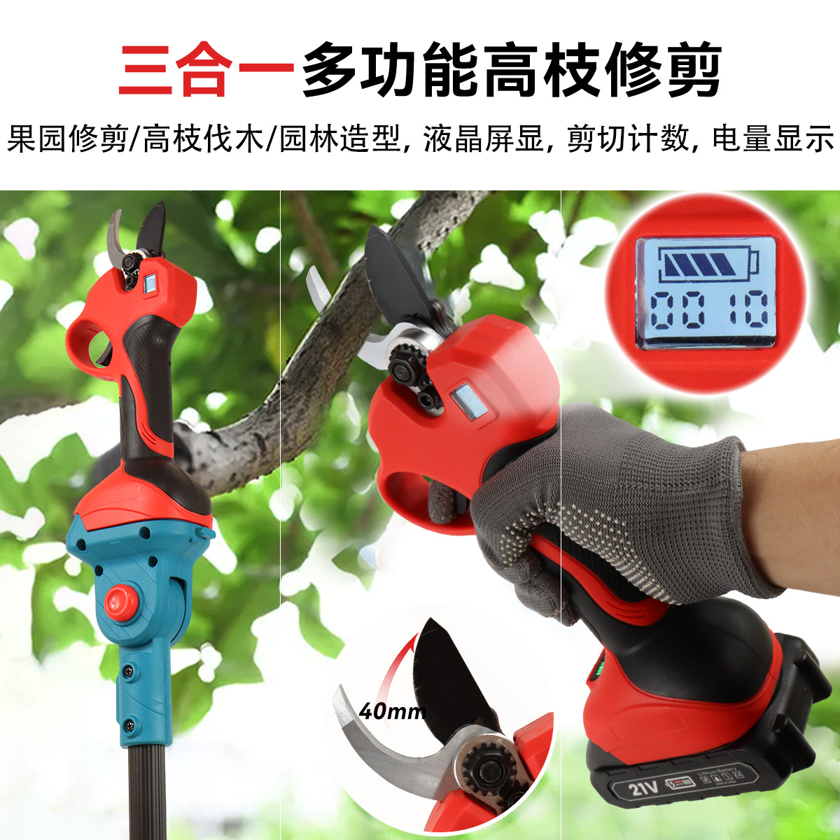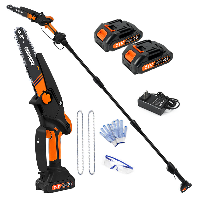 リチウム電池高枝鋸家庭用伐採庭剪定電気チェーンソー延長ロッド高所ハンドヘルドワイヤレス剪定鋸クロスボーダー