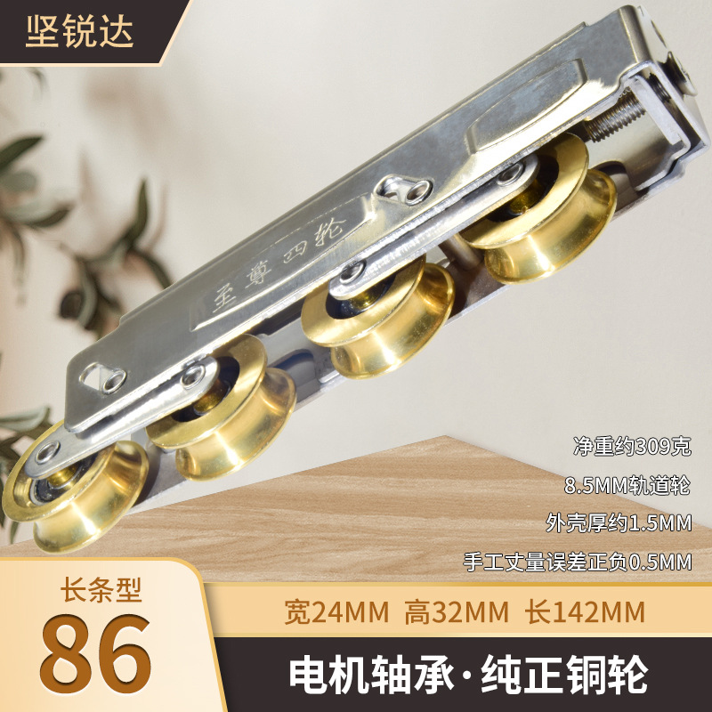 中軌道2086型長条銅四輪ステンレス超滑らか静音軸受ローラーバルコニー押し引き着地ドアホイール