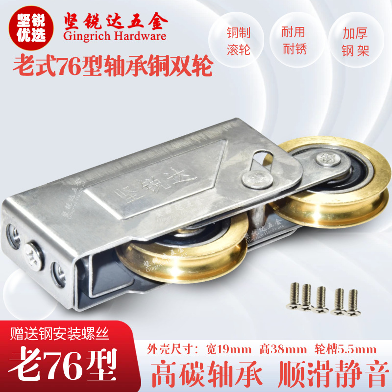 三角レールa90型長条銅二輪ステンレス超順滑静音軸受ローラー旧式移動ドア二重プーリー