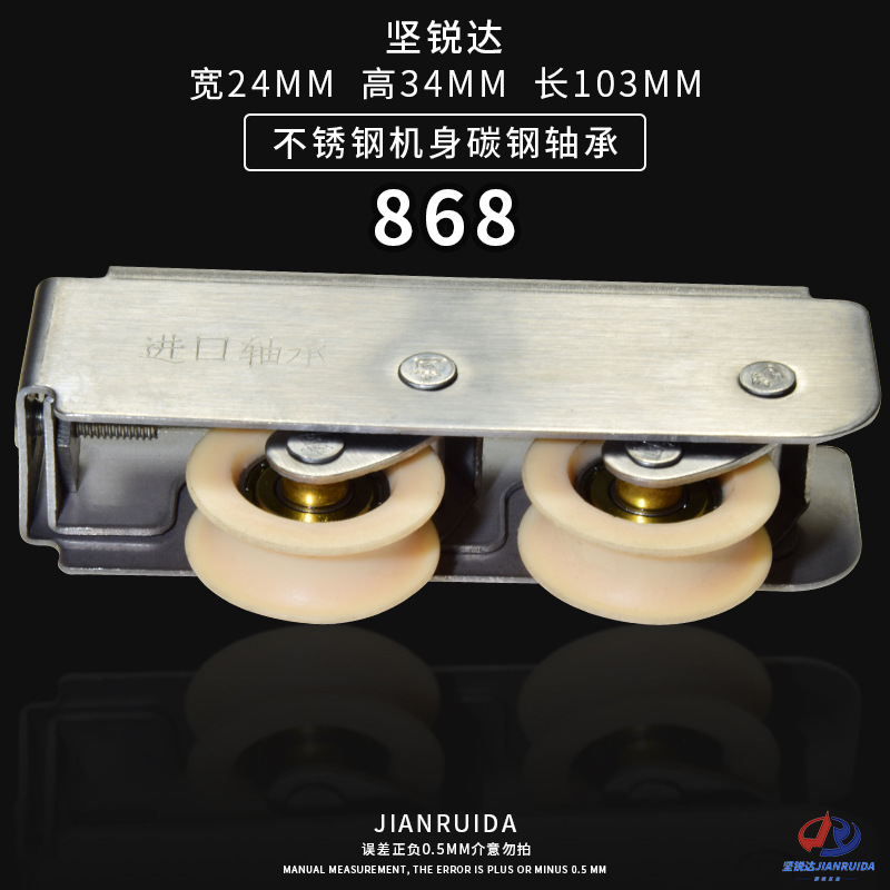 中レール868-2000工事二輪ステンレス順滑静音軸受ローラーアーチ式重押し障子ホイール