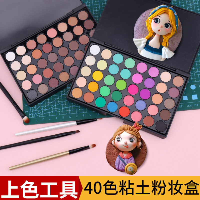 40色粘土パウダー化粧箱人形人形フィギュアソフト陶器粘土アップリケパウダー皿アイシャドウチーク着色ツール
