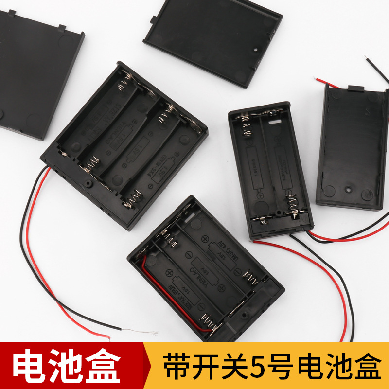 スイッチ付きボタン電池ボックス、単三電池使用、赤黒ワイヤー、熱収縮チューブ付属品