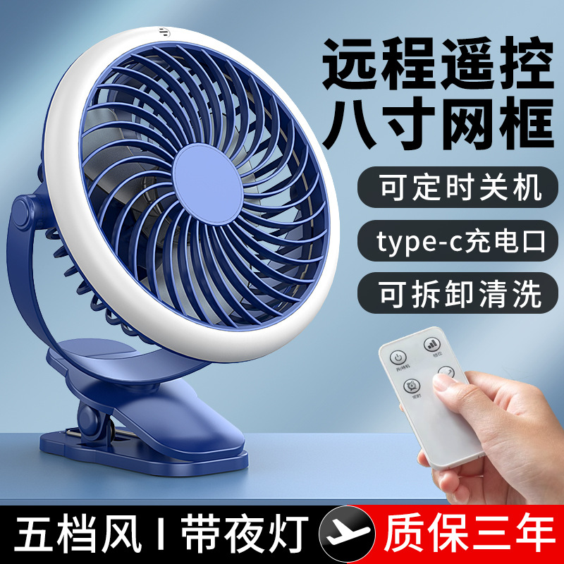 8inch リモコンクリップ小型ファン USB 充電式ホームベッドルームベッドサイド学生寮オフィスデスクトップサイレント小型