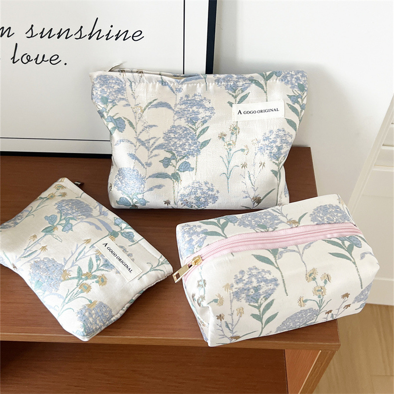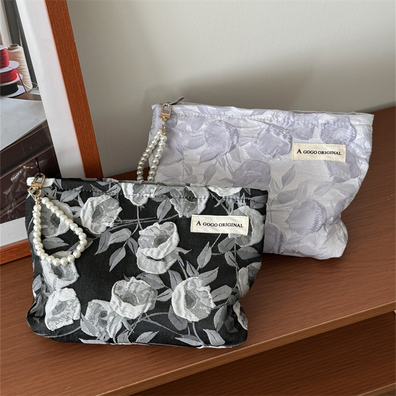Ins小清新立体レリーフ刺繍花高級化粧大容量水乳収納袋携帯バッグ