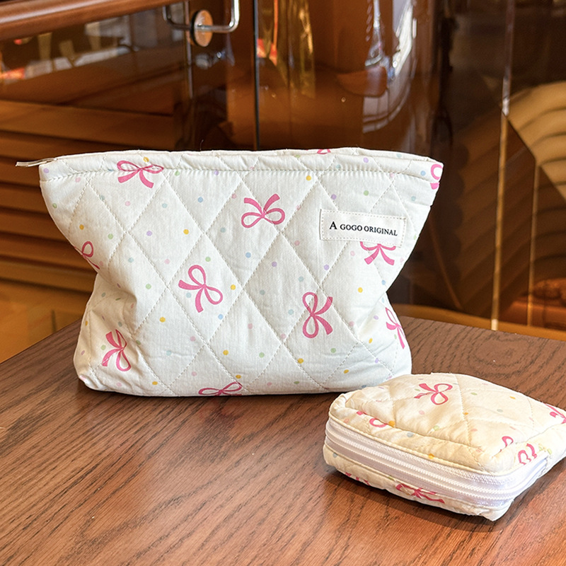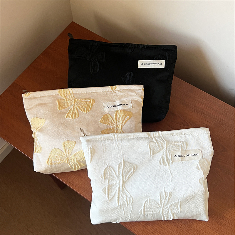 ニッチな化粧品バッグ無地大容量ポータブルライナーバッグリボン化粧品収納袋布シンプル