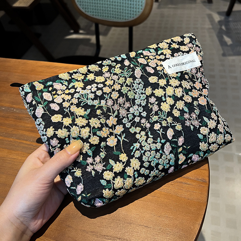 クロスボーダー小清新黒色砕花化粧バッグ携帯スキンケア品収納袋旅行外出洗面バッグ