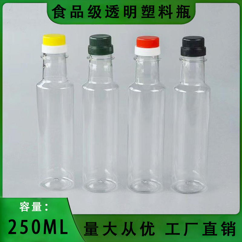 250ML円形透明ペットボトル油酢汁空ボトルPET材质オリーブオイルボトルツバキ油ポットゴマ油ボトル