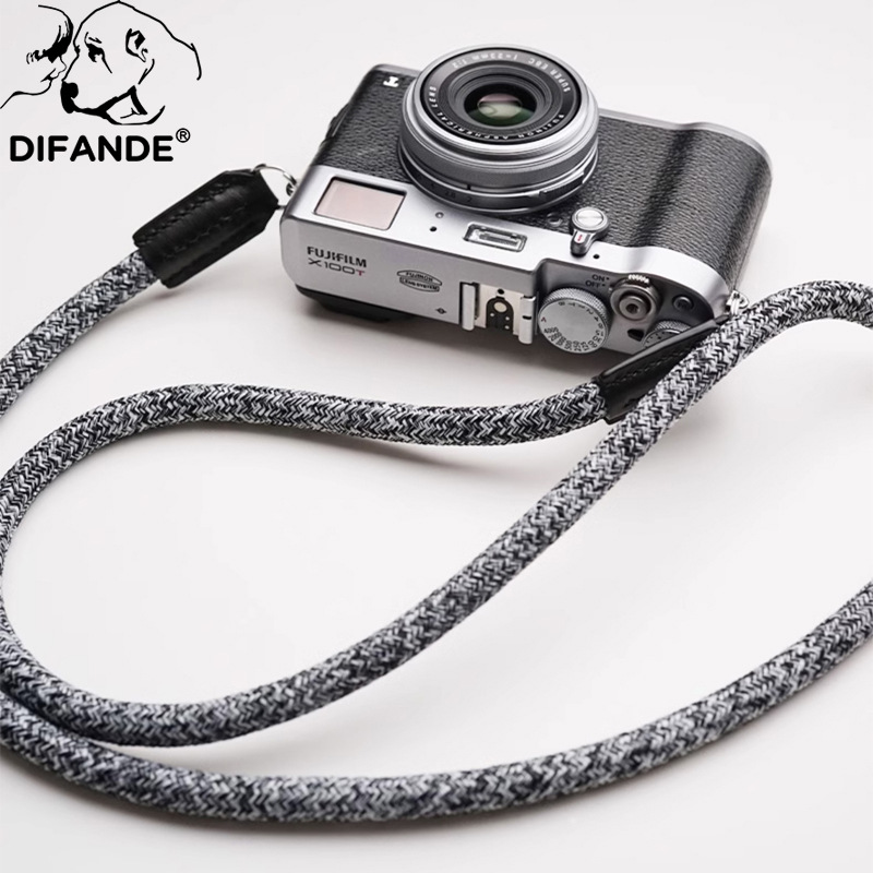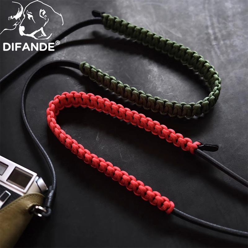 手作りの傘紐編みのカメラストラップは、ライカのソニー富士カメラの斜め掛けに適しています。