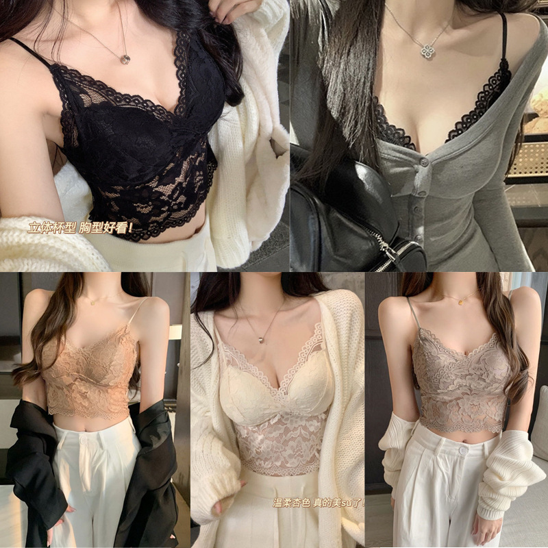 レースキャミソールレディースアウターウェア美背中ブラ一体型スーツインナー底魚骨ブラジャー胸パッド付きトップ