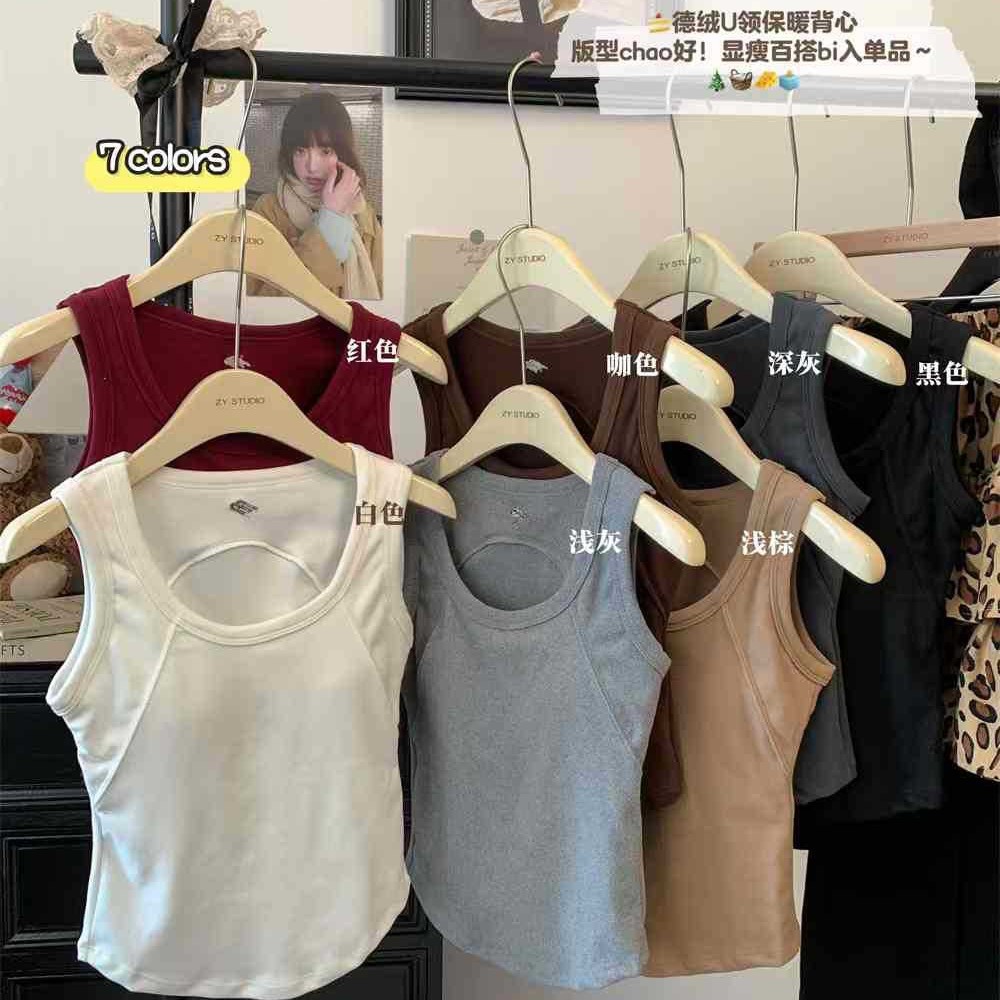 秋冬新作 裏起毛 スクエアネック 保温ベスト レディース スリムフィット インナー 胸パッド付き ノースリーブ 美背トップス