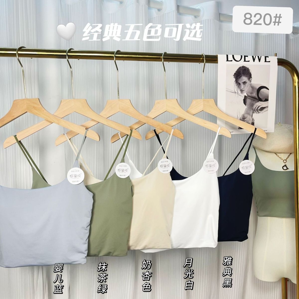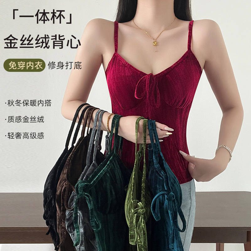 フランスのセクシーなインナーに胸パッド付きのキャミソールの女性が一体になって下着を集めて胸を拭きます。2023新型の上着は夏です。