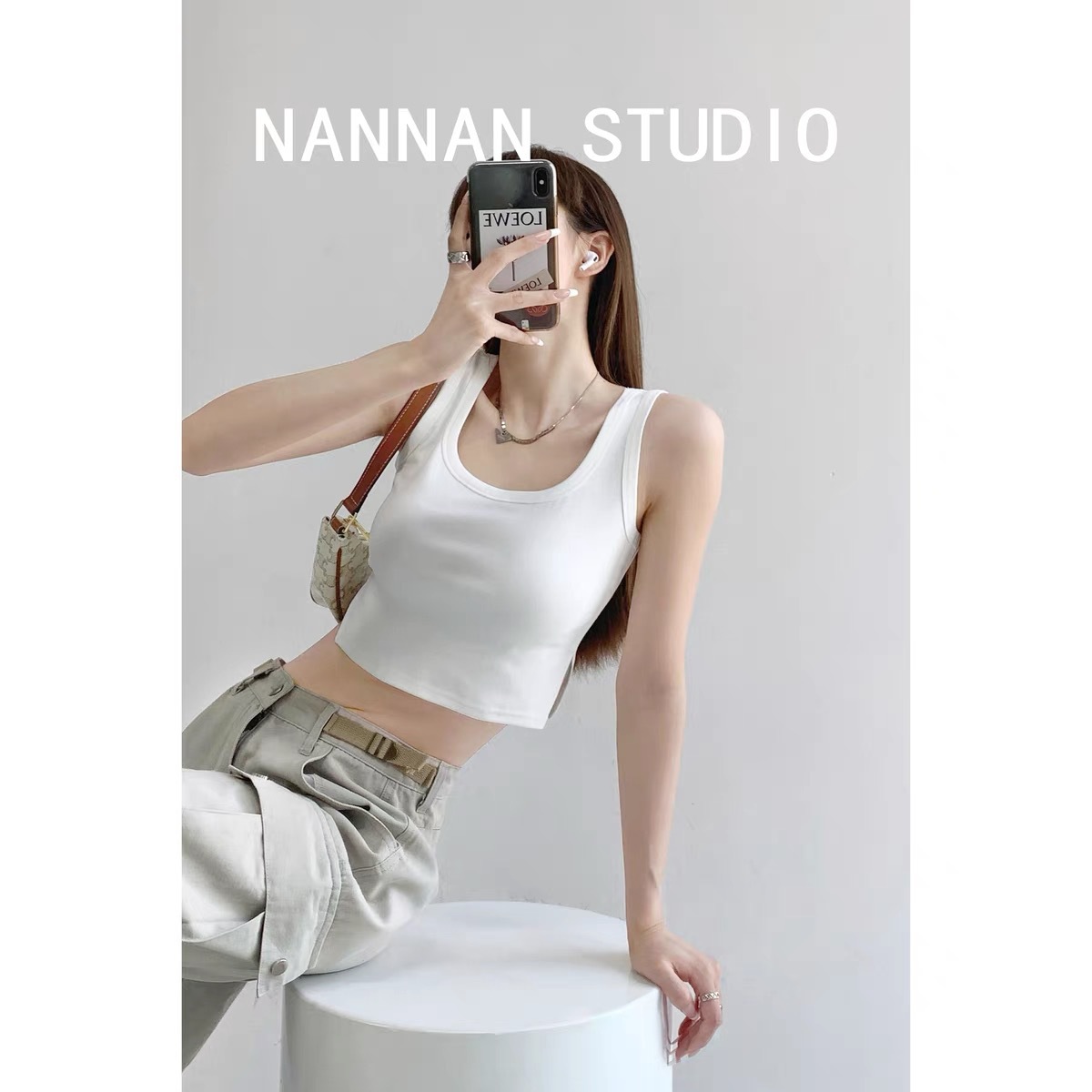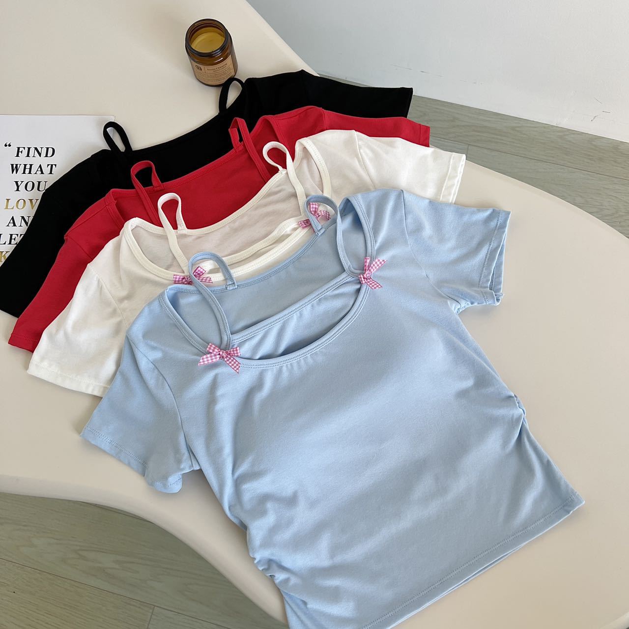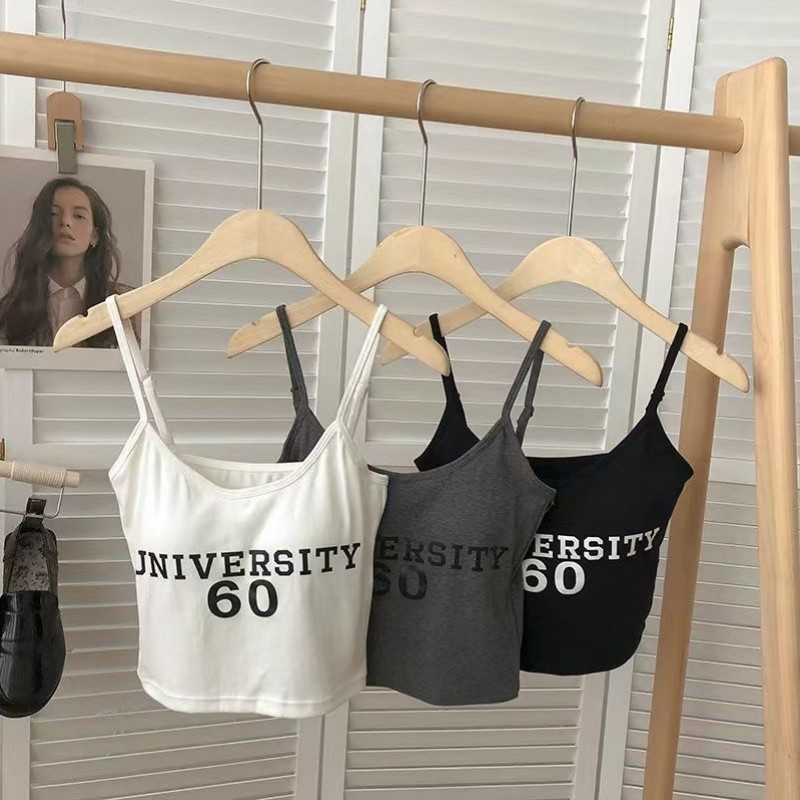生放送で爆発した古典的なギャル文字刺繍キャミソールの外に身を着て痩せている