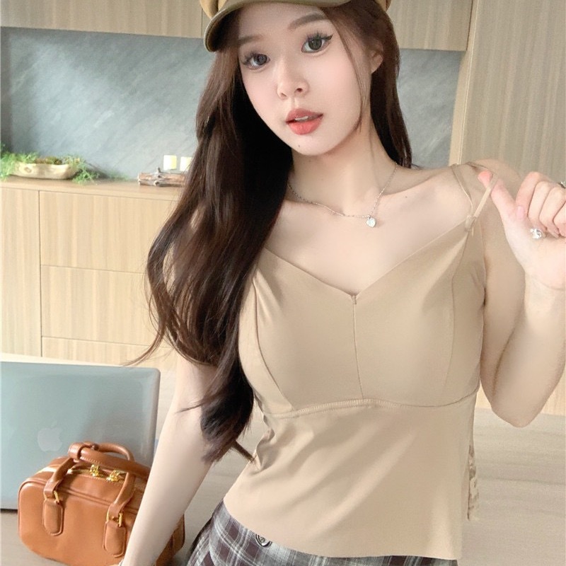 爆発的な小さなストラップのベストの純色のギャルのしわの美背の外着の中に、底を打って身を修めるのはやせていて胸の上着を塗ることができます。