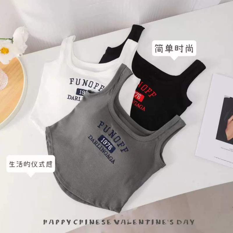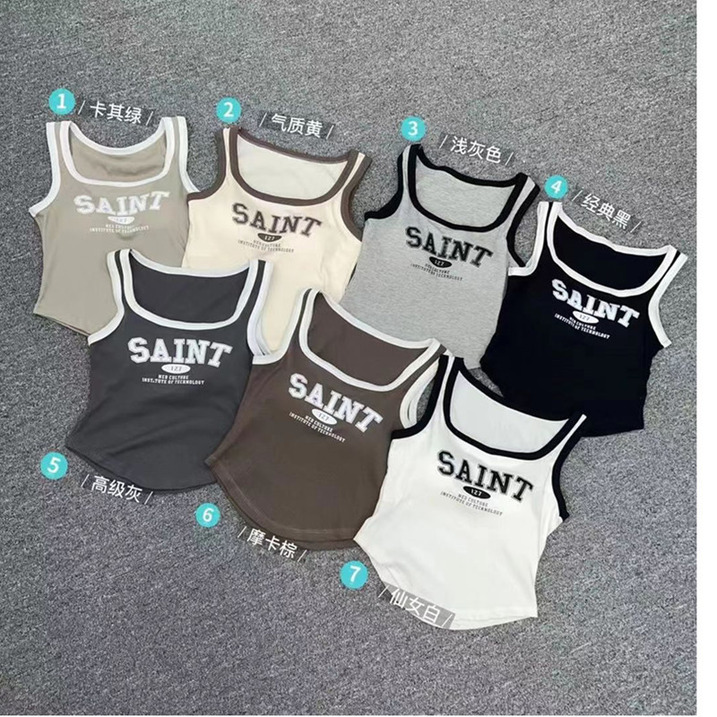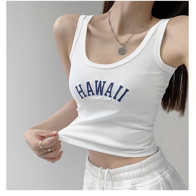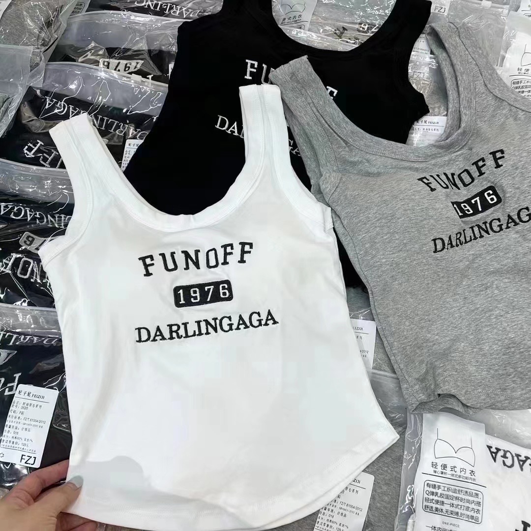2023新作刺繍アルファベットロングベストベルト固定胸パッドスポーツ美背底ノースリーブインナートップス潮