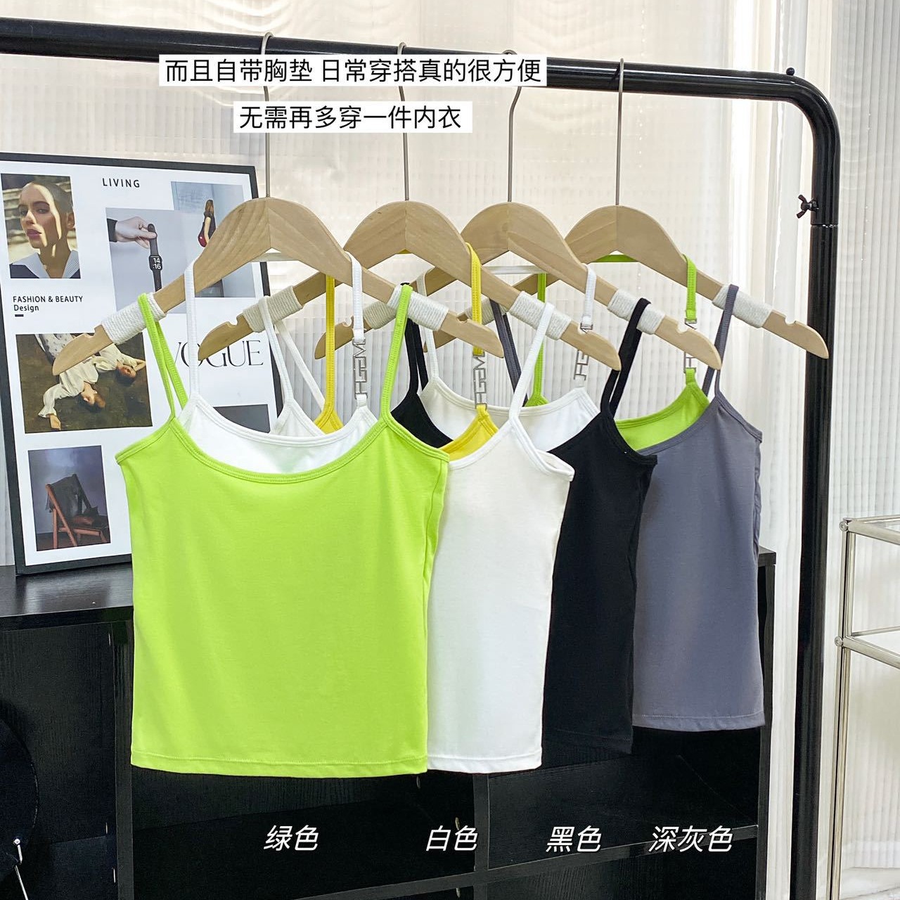 生放送で起爆した純色のベストは夏に胸パッド付きの広い肩でスリムに見えます。袖なしの上着を着ています。