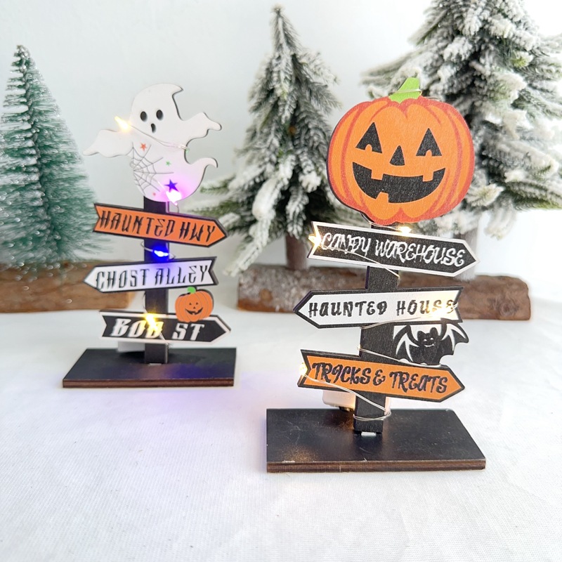 LT国境を越えたハロウィーンパーティーの祝日の木製装飾品ハロウィーン鬼節カボチャ幽霊ランプ付き樹形飾り