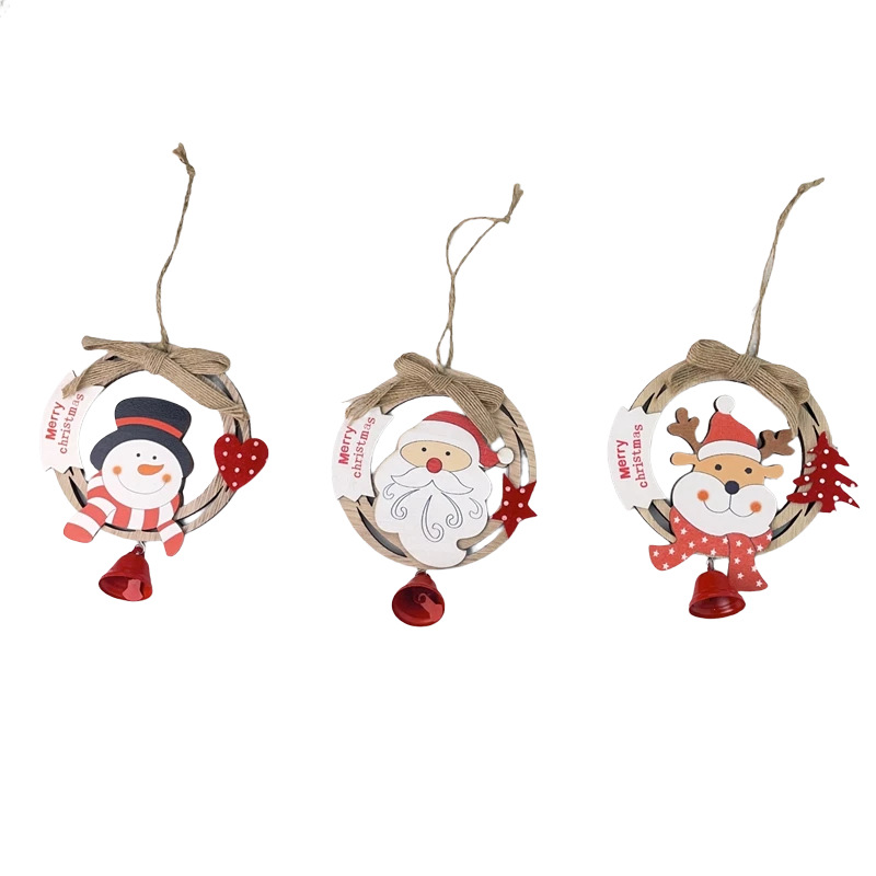 CYクロスボーダー新型サンタクロース雪だるまヘラジカ花輪木製ストラップリボン鈴付き木製リング装飾品