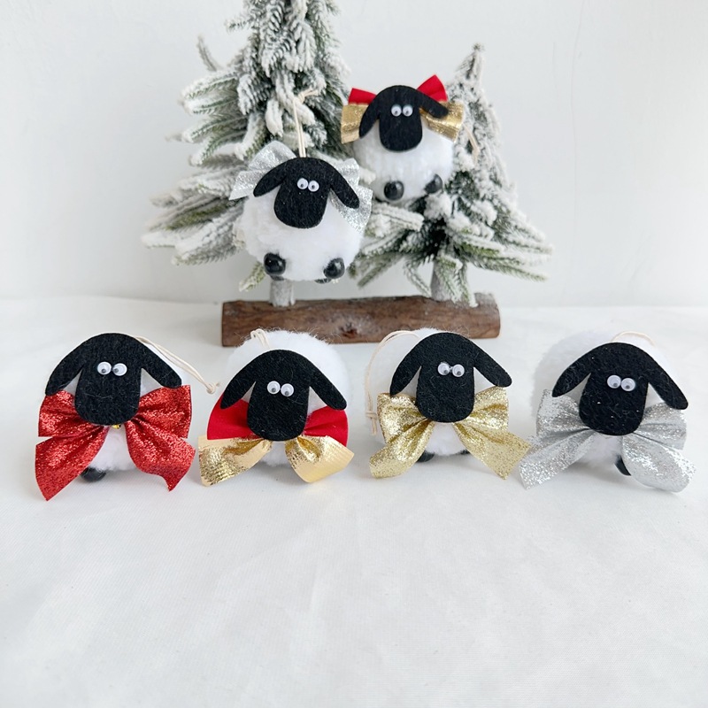 LTクロスボーダー新クリスマス装飾小羊ストラップ蝶結びぬいぐるみ白黒羊装飾品かわいい動物ストラップ