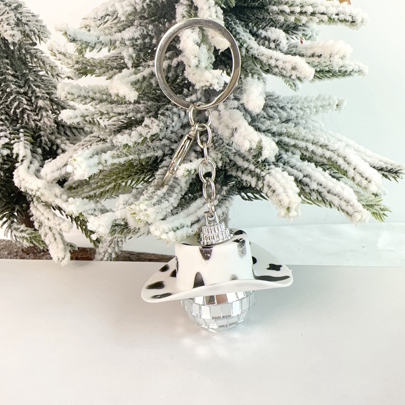 LT乳牛カウボーイ帽鏡球キーホルダー反射ガラスディスコ自動車ストラップバッグストラップ