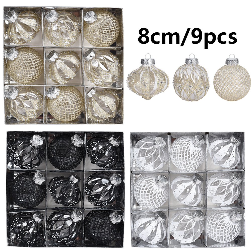 辰林クロスボーダークリスマス装飾品セット8cm/9個PET透明ボールペンダントクリスマスツリーペンダントクリスマスボール