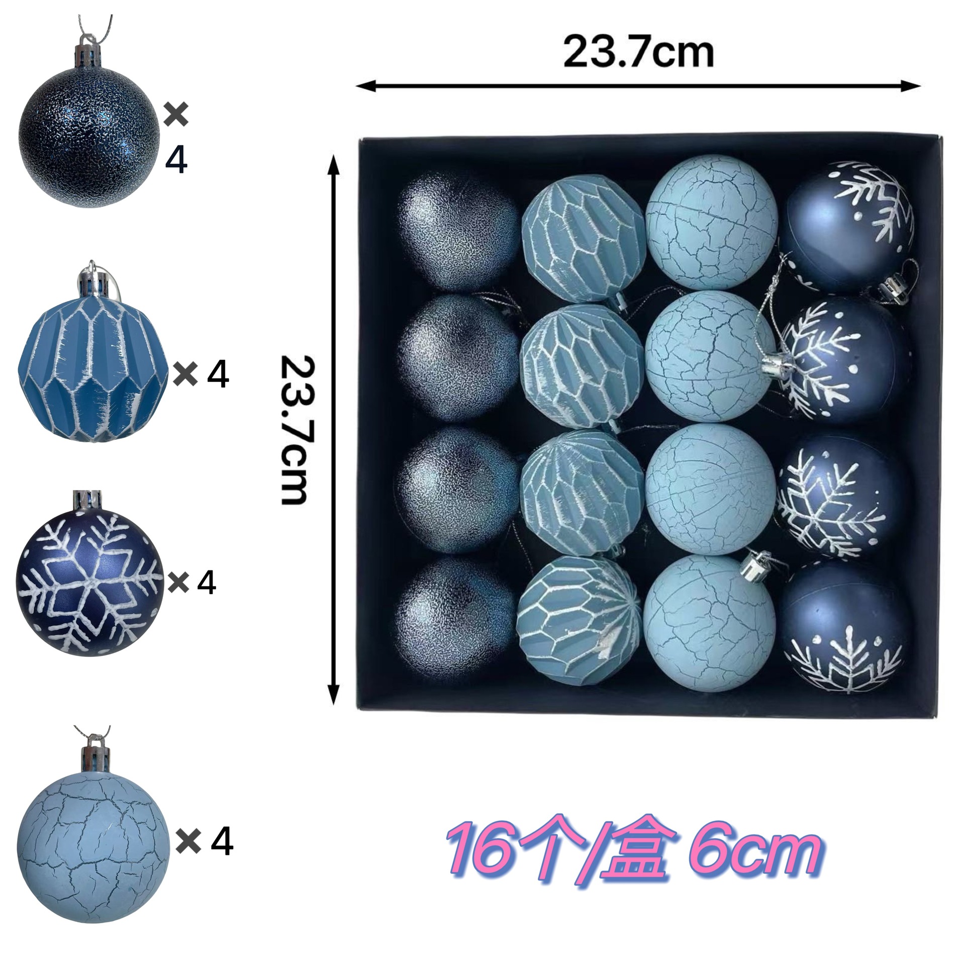 新品6cm16個クリスマスボールクリスマス装飾メッキ塗装クラック雪花コンビネーションセットボールペンダント