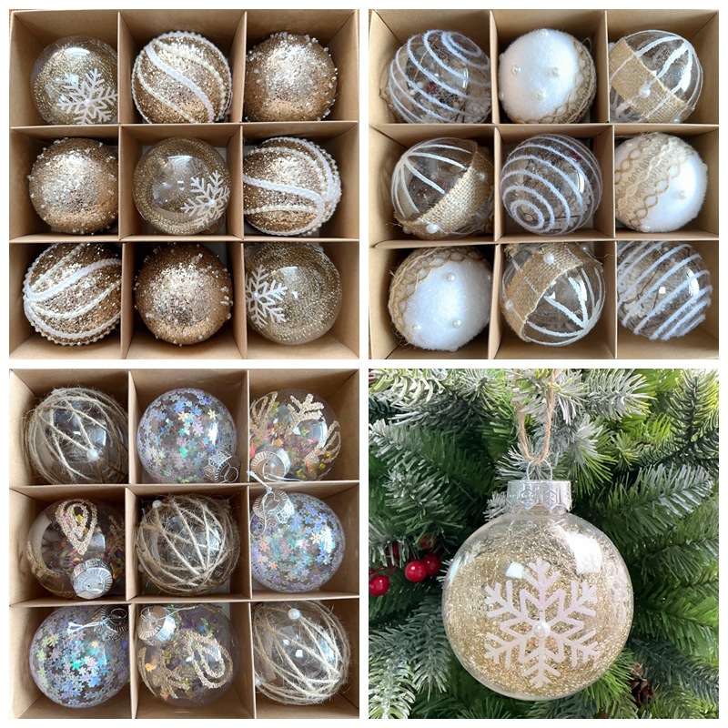 LTクロスボーダークリスマス8cm装飾ボールクリスマスツリープラスチックボールストラップセットボール麻紐透明ボールクリスマス装飾