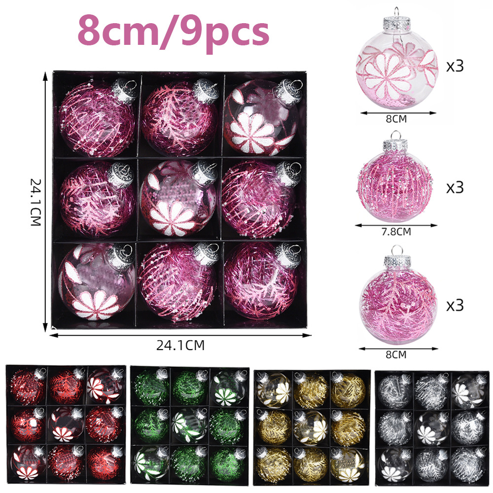 Chenlin クロスボーダー透明ボール PET8cm/9 個手描きプラスチッククリスマス装飾クリスマスツリーペンダントクリスマスボール