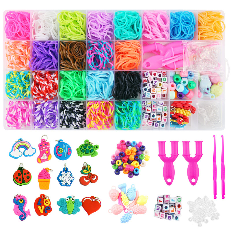 32格1500本虹輪ゴムDIY児童鎖カラー編み皮筋児童知育玩具鎖