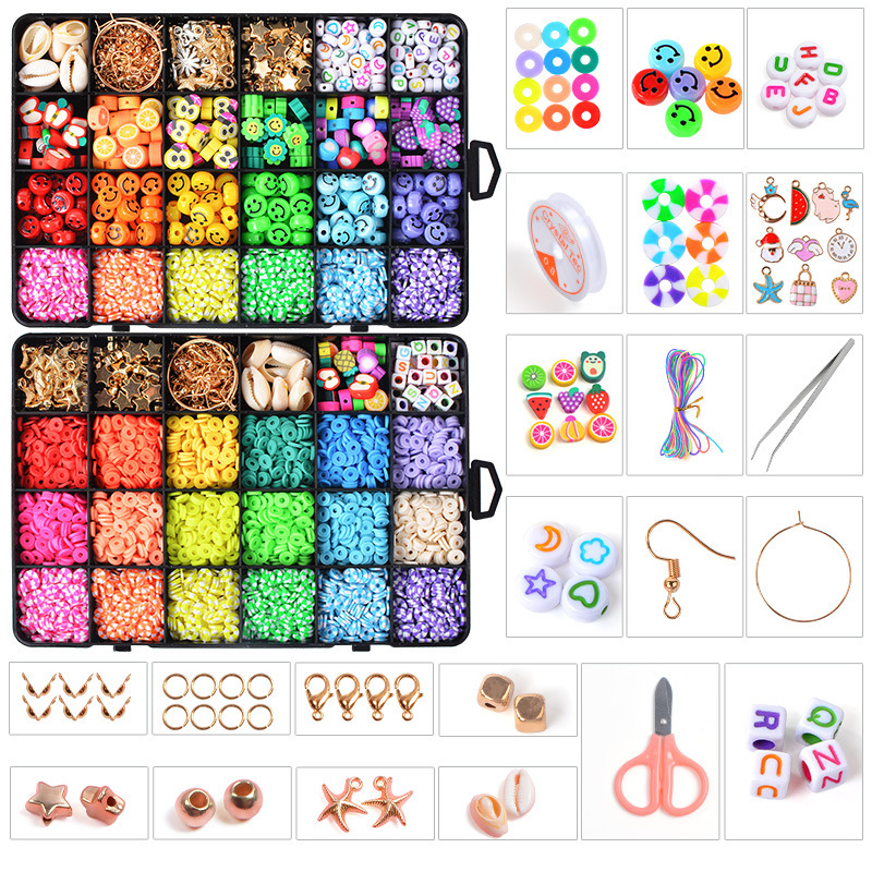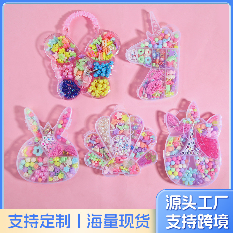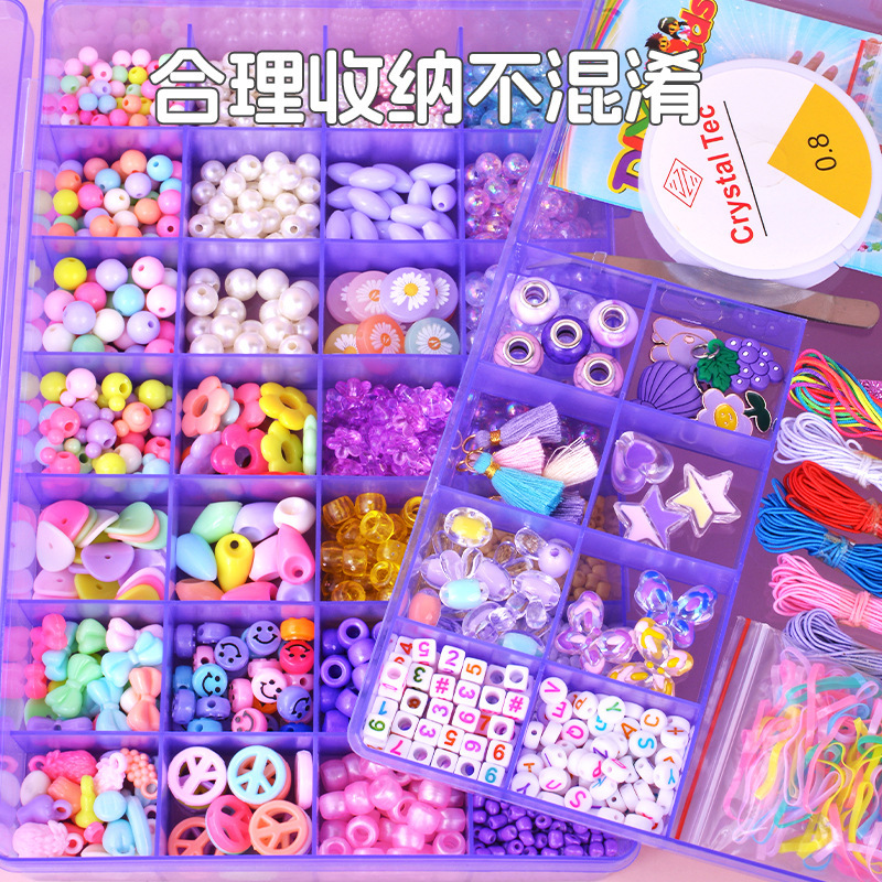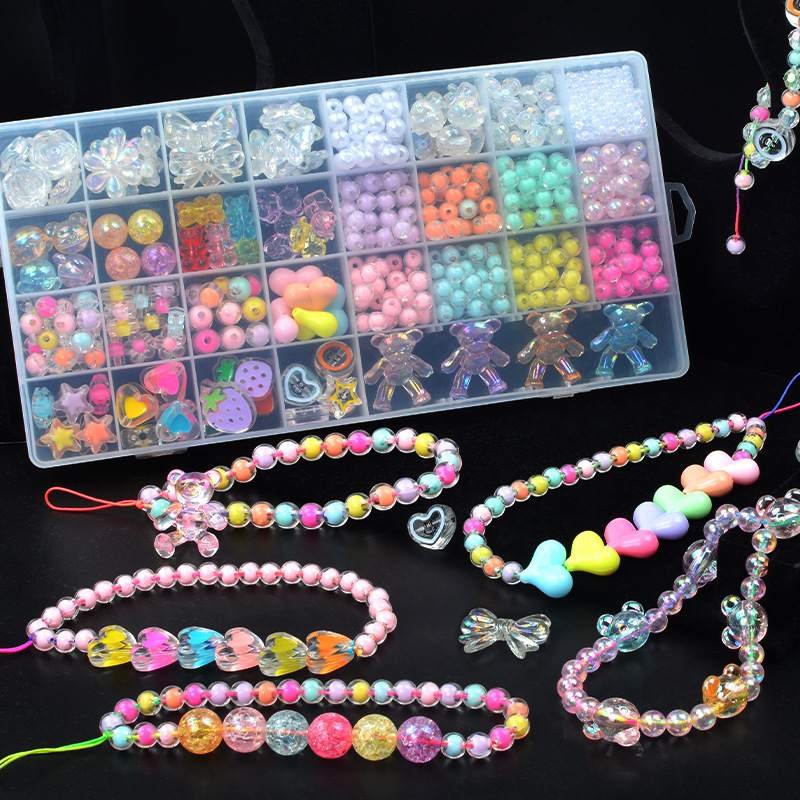 子供手作りビーズ玩具diyビーズ材料箱カラービーズブレスレットネックレスアクセサリー散珠セット