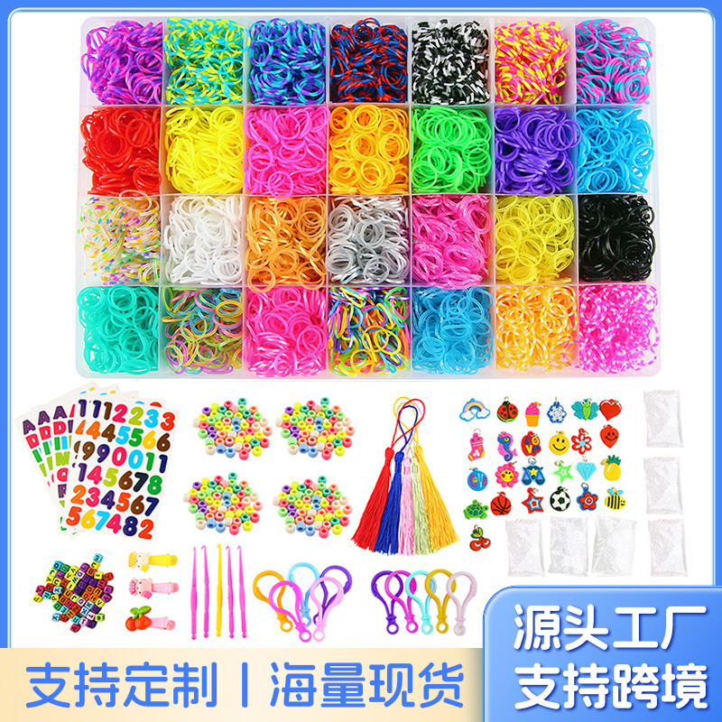28 グリッドレインボー手織り機 DIY レインボーラバーバンド教育子供のおもちゃ編みブレスレットセット