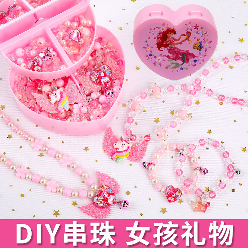 子供のビーズの女の子のおもちゃの益智手作りのdiyは材料を作ってブレスレットのネックレスのアクセサリーの漫画のギフトボックスを包みます。