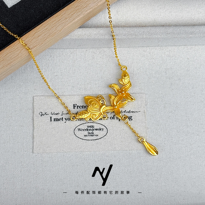 シャキンの女性の新しい中国風の小さい大衆のバタフライの花の精巧な鎖骨のチェーンの生放送の金の流蘇の花のネックレス