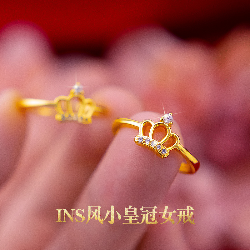 ベトナム沙金日韓ネットレッドの王冠指輪の震え音速手生放送のins風は王冠の女性ドリルリングをそっとはめ込んでいる
