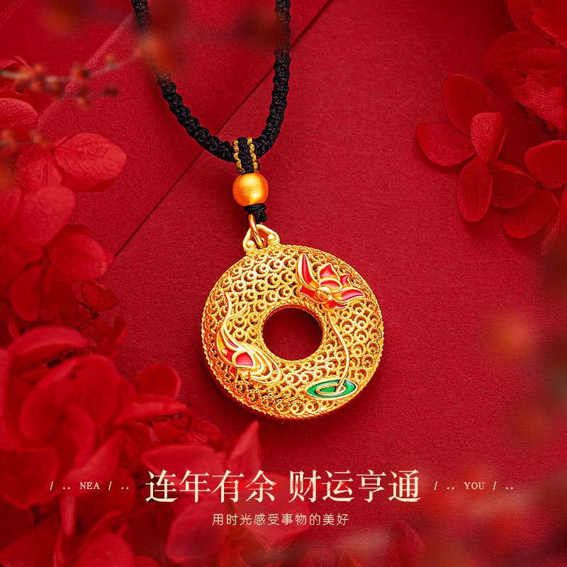 新中国式の小紅の本の震える音の韋雪の同項は古法の金花の糸の祥雲の如意の羅針盤のセーターのチェーンのペンダントをドリルします。