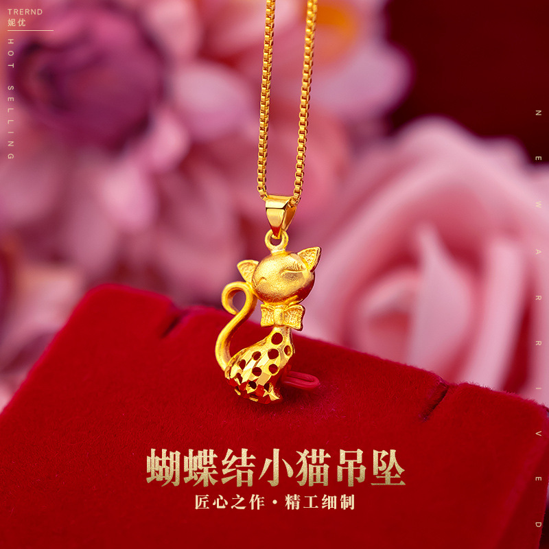 尼優アクセサリーベトナム沙金銅金メッキ古法子猫ペンダント女性動物猫ペンダントネックレスアクセサリー