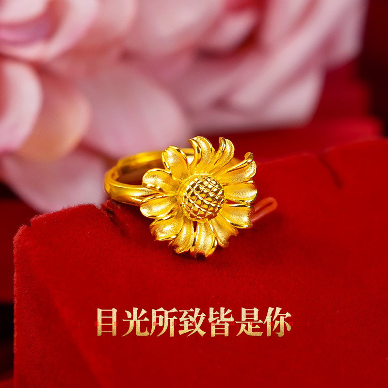日韓のファッションの金版のネットの赤い金のヒマワリの女性はベトナムの砂の金色の砂のヒマワリの太陽の花の指輪の女性をやめます。