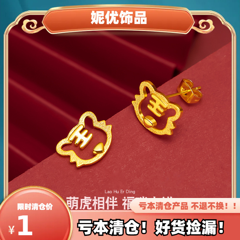 ベトナム沙金迎虎年福瑞吉祥虎耳飾りかわいい萌え趣味虎ピアス祭りプレゼント24k金