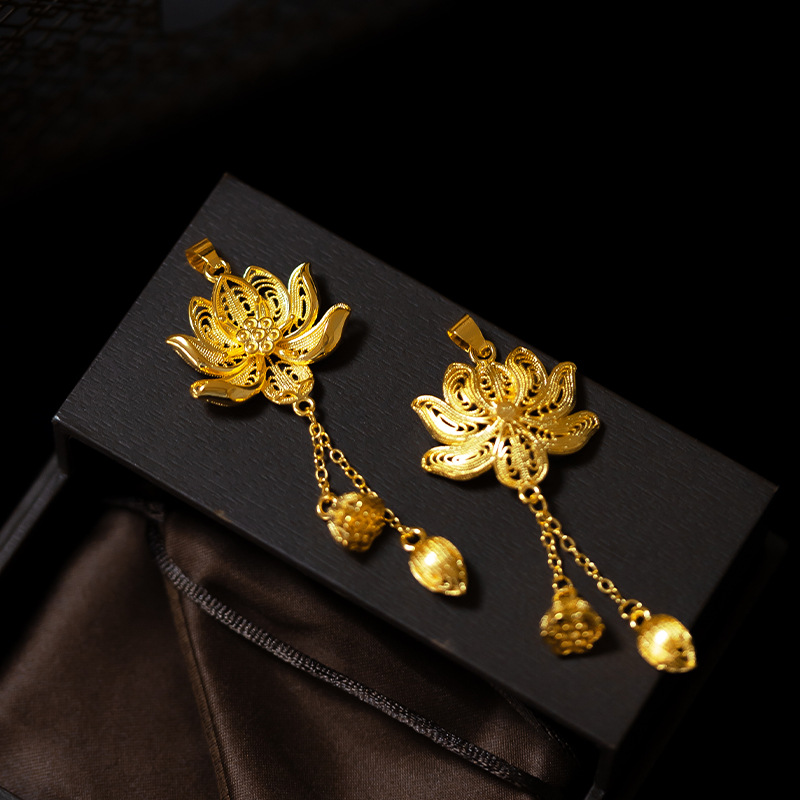 古法金メッキ花糸蓮ペンダント砂金小紅書同項高級感好事蓮蓮蓮蓬ペンダント