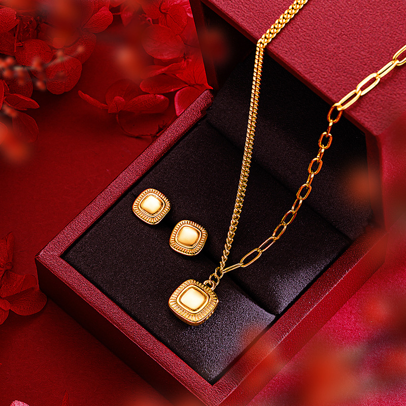 紅書網紅周家同項流金歳月小面ネックレスピアスセット