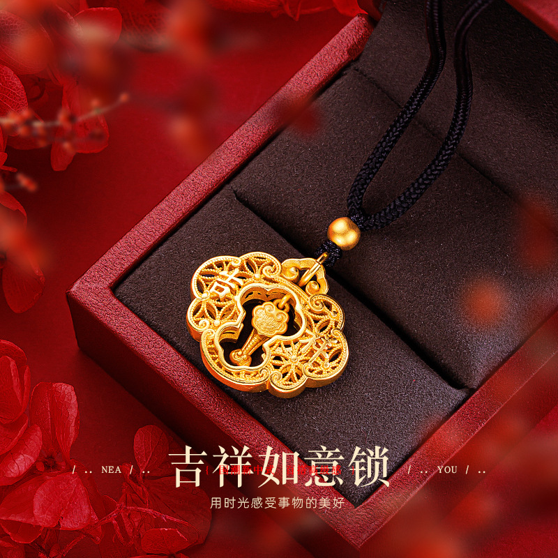 新中国風国潮民族風吉祥如意透かし彫り長命鎖黒縄ネックレス花糸吉祥如意鎖ペンダント