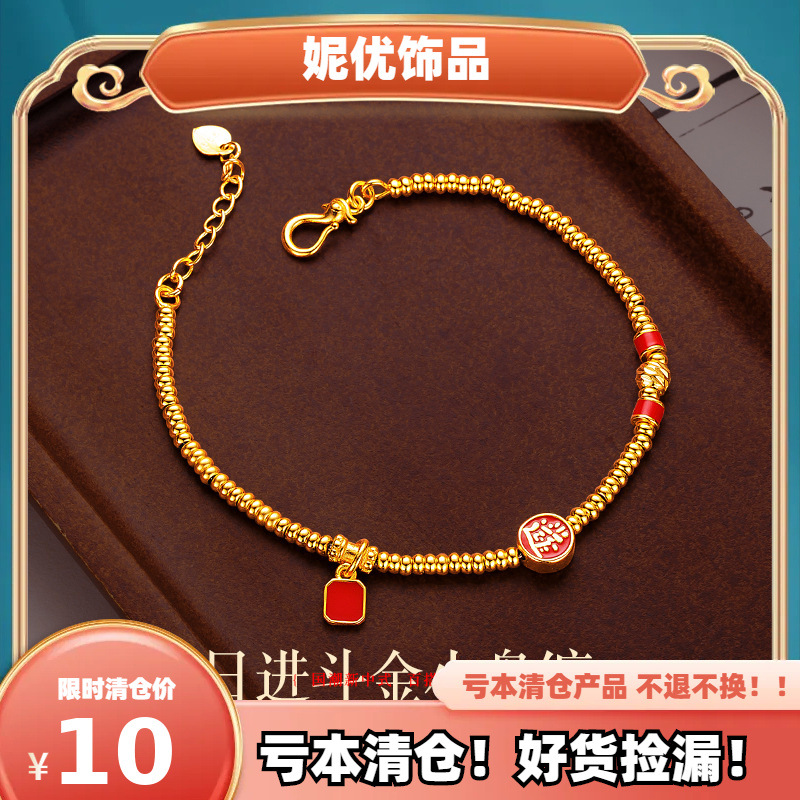 新中国風国潮民族風エナメル彩日進闘金盤巻き玉ブレスレット沙金久無色ジュエリー卸売り