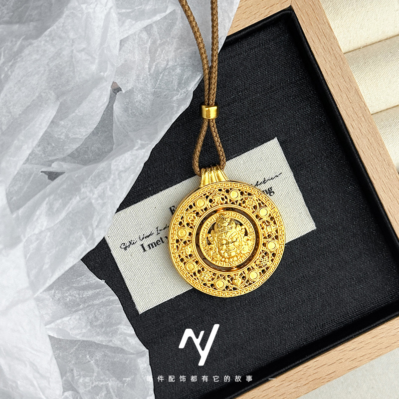 新中国式デザイン感古法金黄財神回転八宝コンパス沙金ペンダントネックレスセーターチェーンカップル
