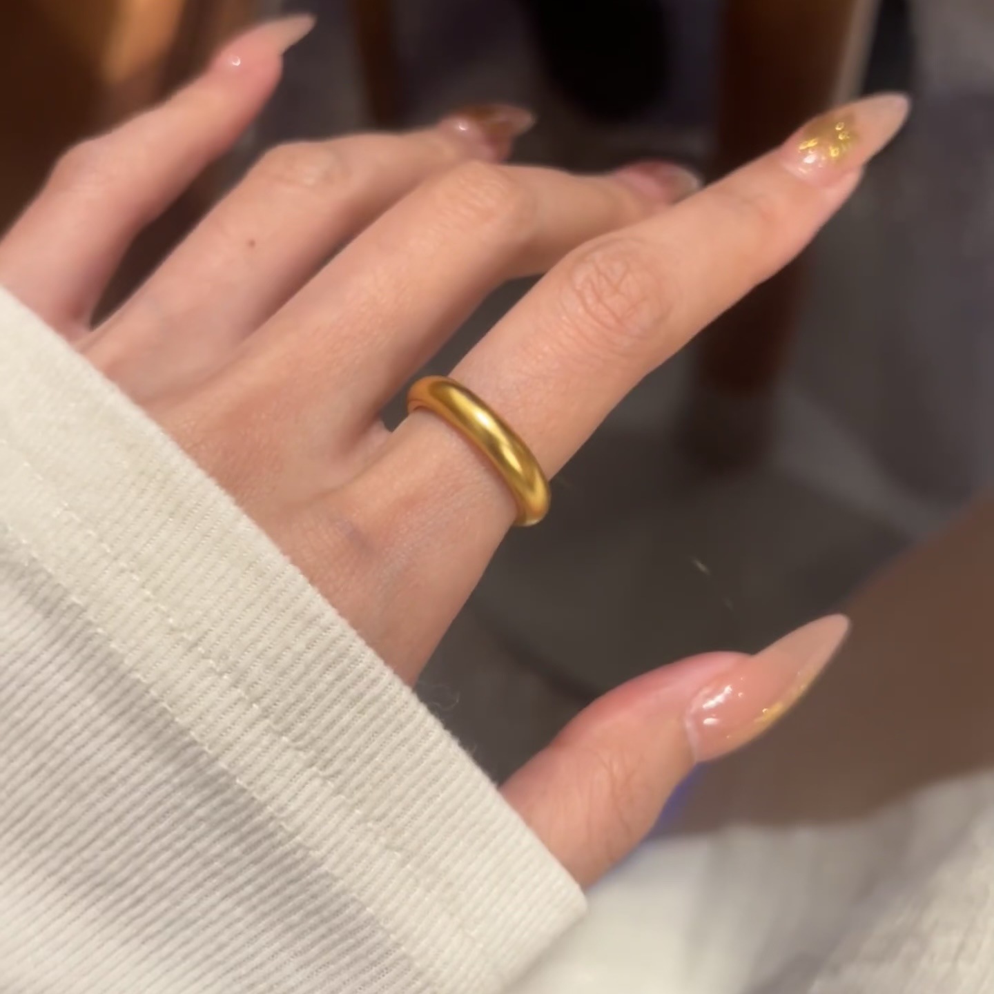 新中国式デザイン感古法伝承どじょう背厚素輪指輪女沙金閉口金工指環卸売り