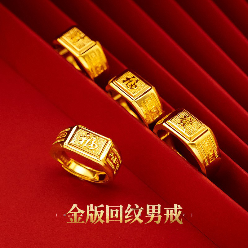 金店同金発福財回紋指輪砂金純銅メッキ24k金回紋開口指輪発福財男戒